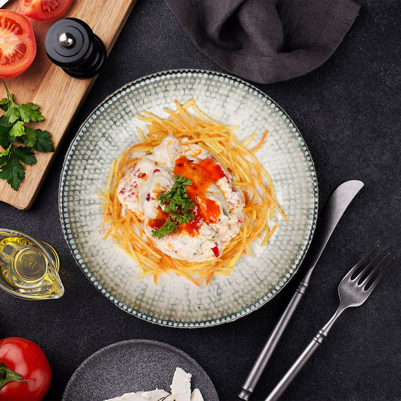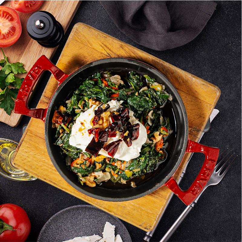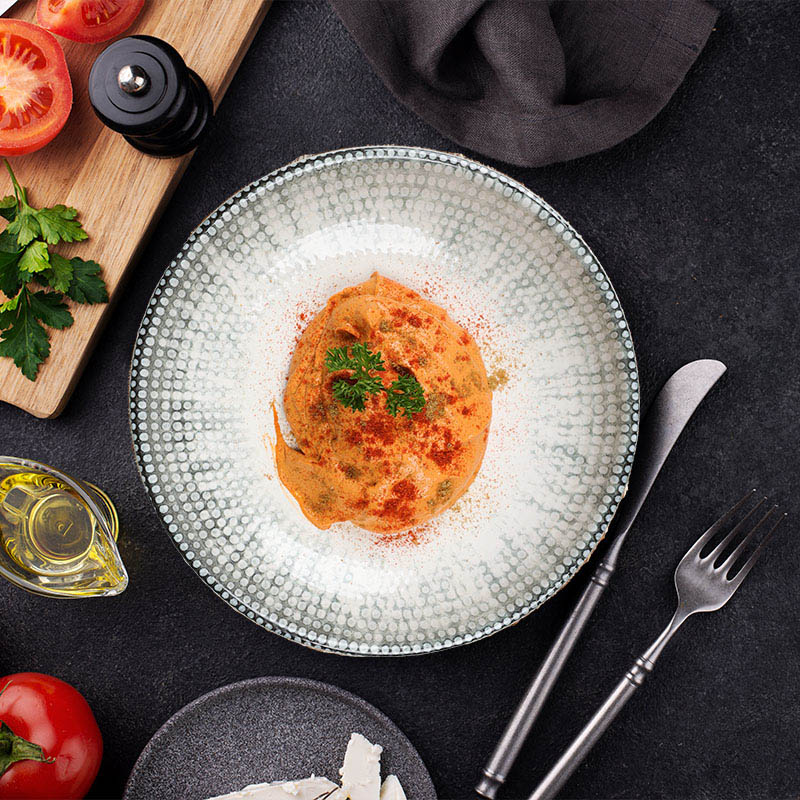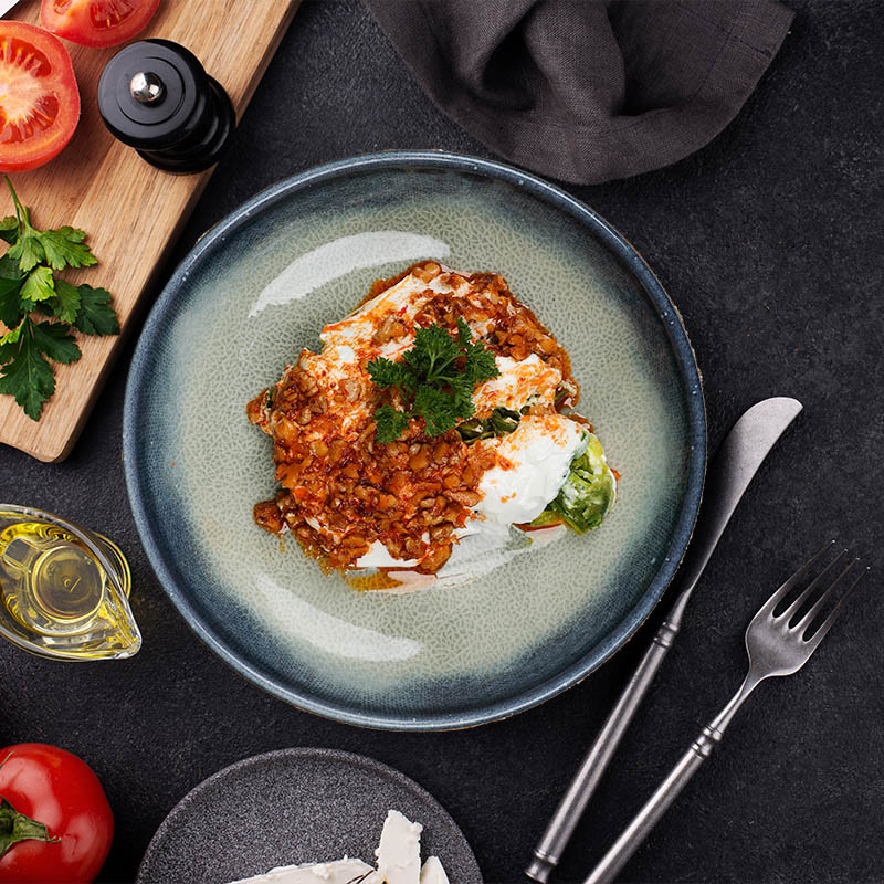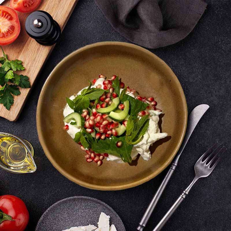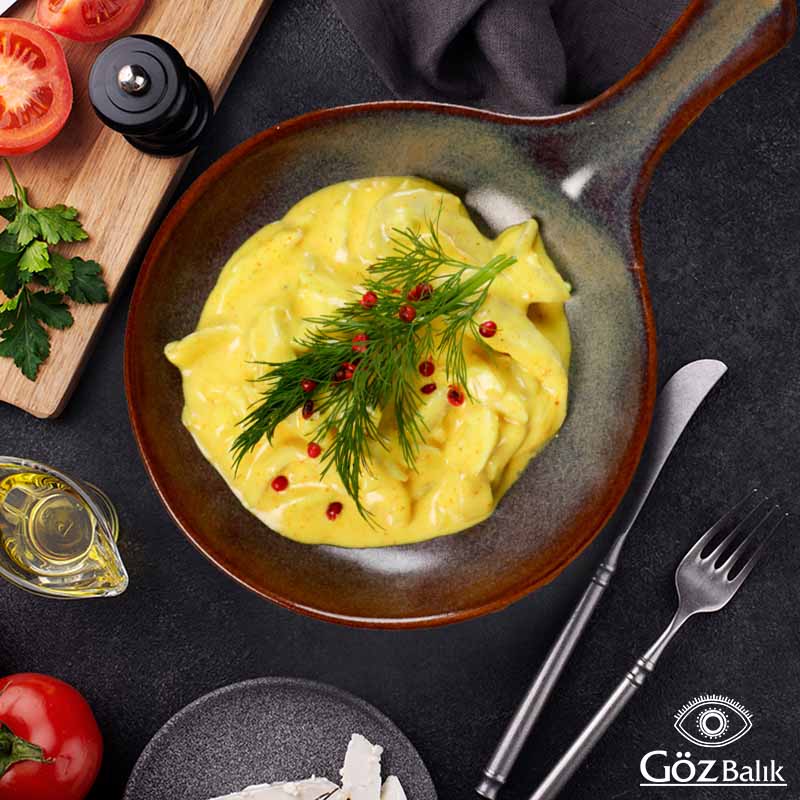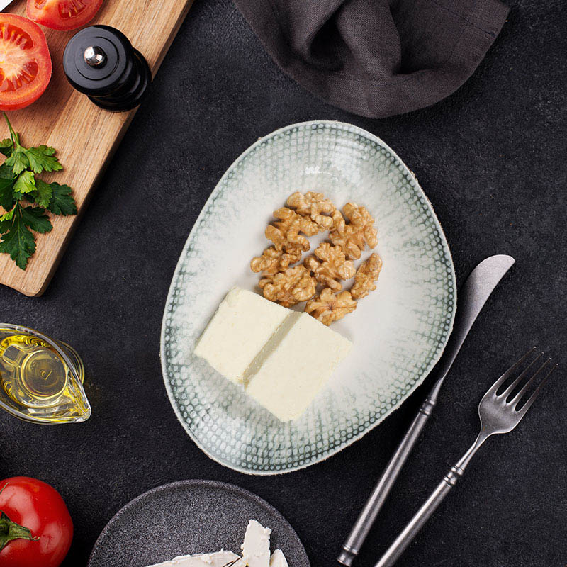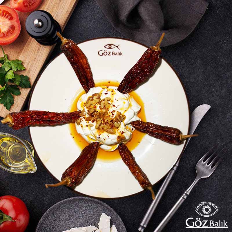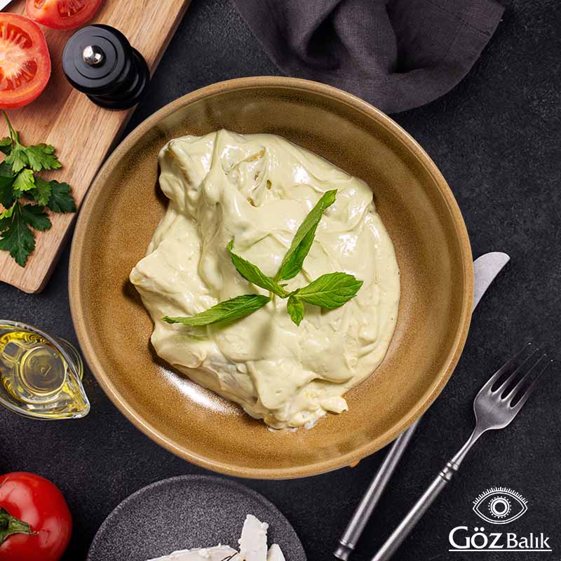 İki Farklı Peynir, Süzme Yoğurt, Biber, Ceviz, Salça, Dereotu, Nane, Üzerine Kızarmış Yufka.